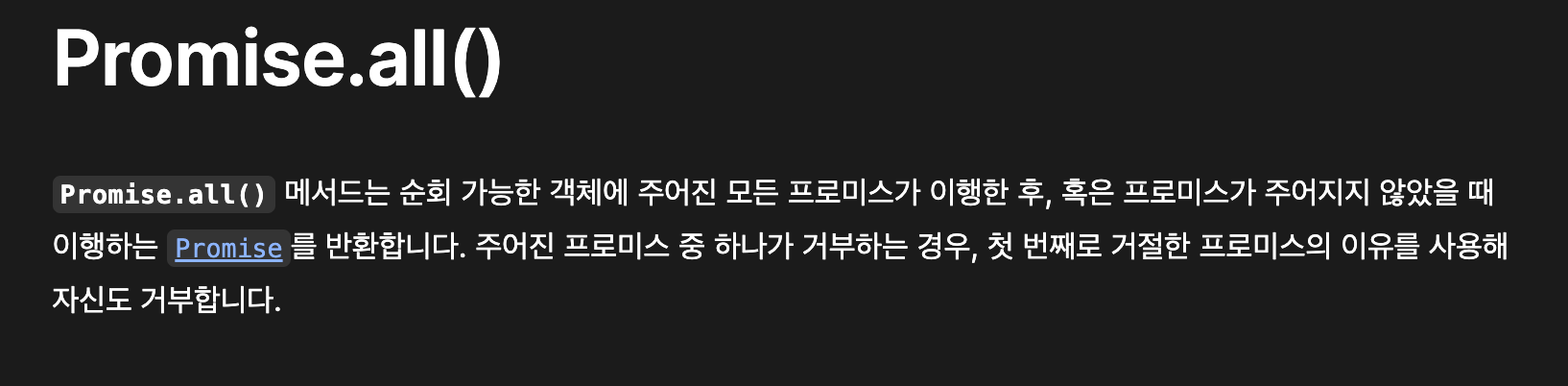 이런 pending(대기) 상태의 Promise 객체들의 배열이 찍히는 걸 알 수 있다..